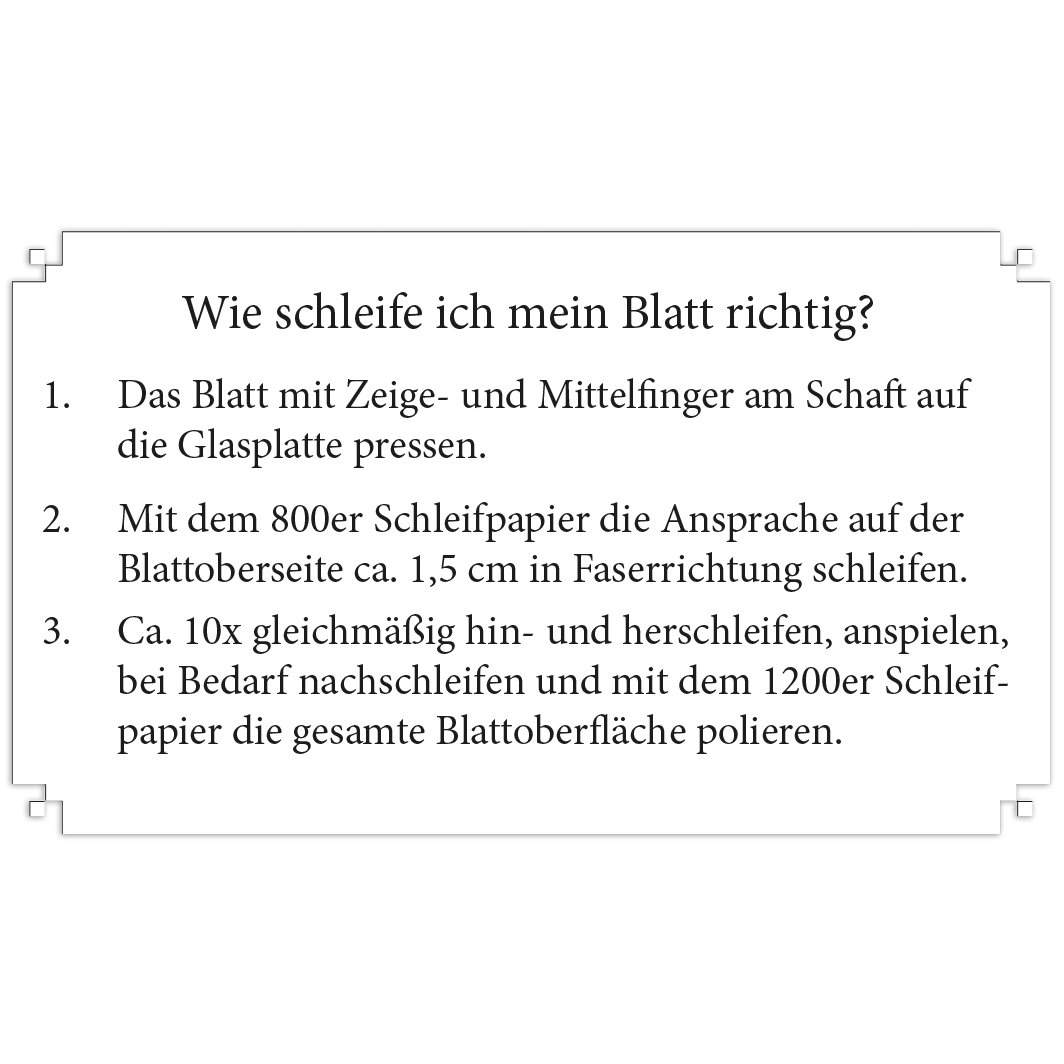 Mit Schleifanleitung, 2 Schleifpapierstärken zum Schleifen und Polieren sowie einer entgrateten 5mm Glasplatte in der praktischen Box.